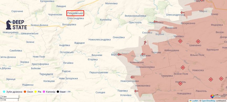 Russiske tropper invaderte Dnipropetrovsk-regionen 24. august og okkuperte landsbyene Zaporozhske og Novoheorhiivka ( 1 , 2 ). Dette innrykket fulgte etter harde kamper i den sørlige Donetsk. Russiske myndigheter hevda å ha oppnådd «suksesser» i dette området så tidlig som i juli, og rapporterte om «erobring» av landsbyen Dachne. Ifølge det ukrainske etterretningsprosjektet DeepState (OSINT) pågår imidlertid fortsatt kampene om Dachne, og landsbyen forblir i en «gråsone».