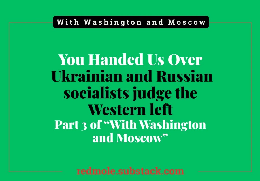 Denne delen av denne artikkelserien snur den vanlige dynamikken på hodet. Det er ikke enda en vestlig kommentar om Ukraina. Det er dommen til ukrainske og russiske sosialister på en vestlig venstreside som hevda å snakke i deres navn, samtidig som de i praksis overlot dem til å bli delt mellom imperier. Dette er ikke ofre som trygler om sympati. De er politiske aktører, organisatorer og teoretikere som kjemper en krig på to fronter samtidig, og deres dom er knusende.