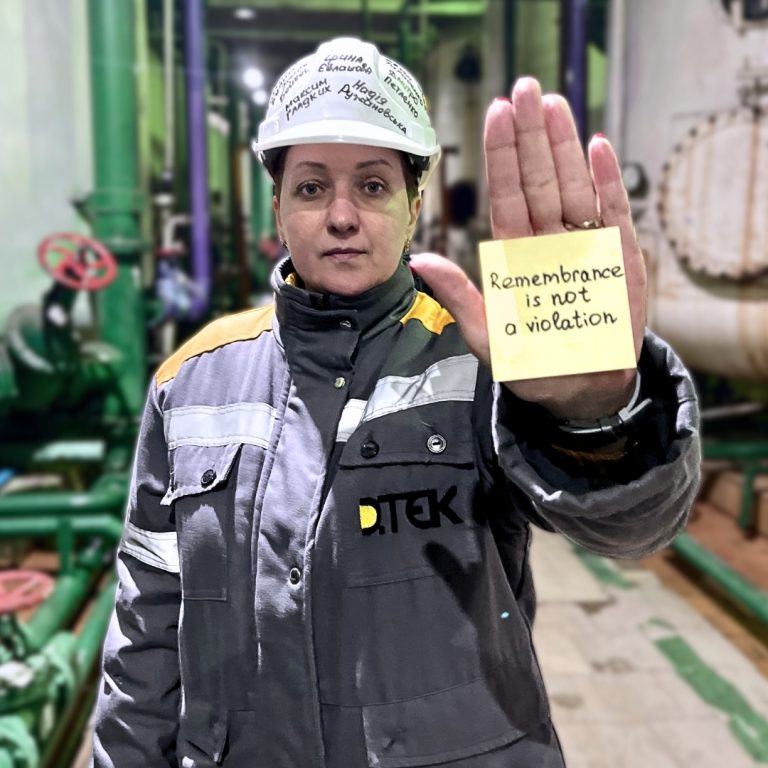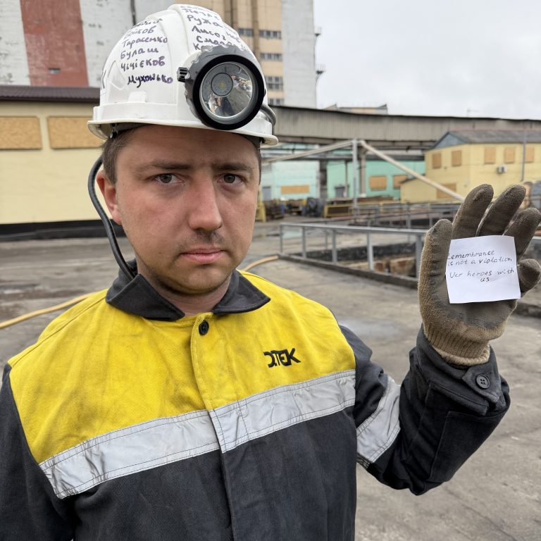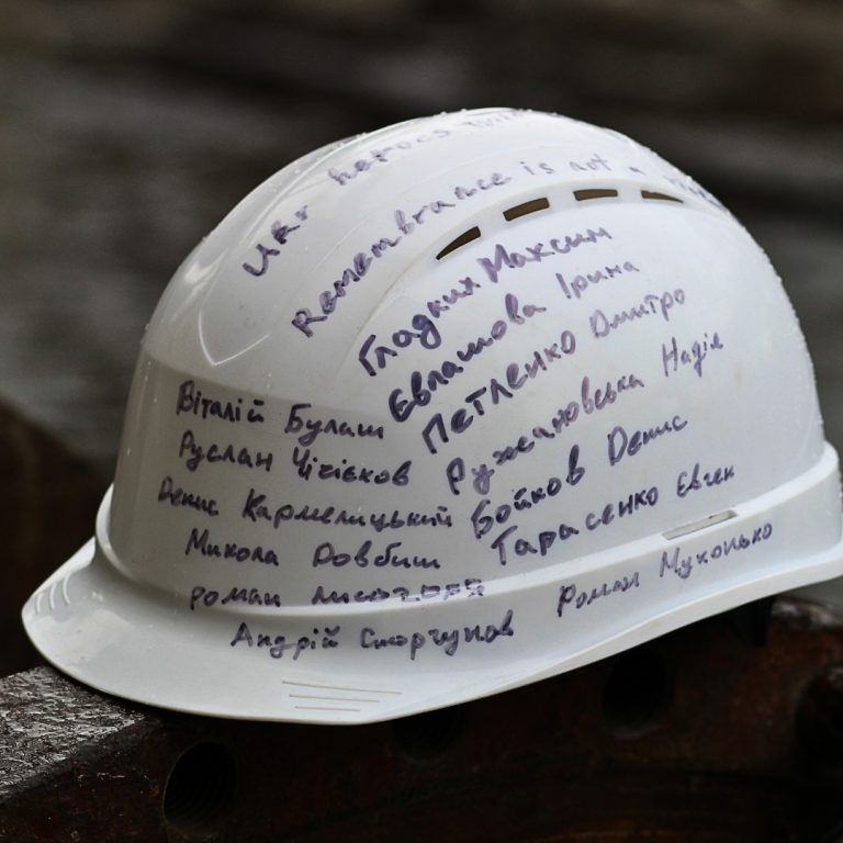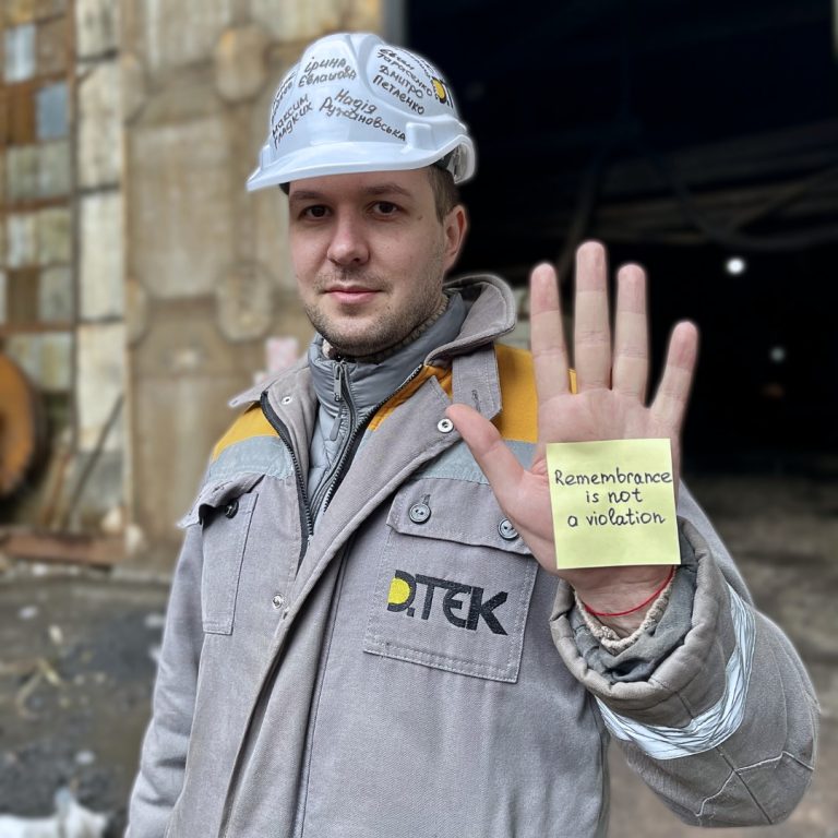 Som et tegn på solidaritet brukte gruvearbeidere, energiarbeidere og ansatte ved andre DTEK-produksjonsenheter hjelmer som bærer navna til kollegene deres som har blitt drept av russiske terrorister mens de jobbet ved termiske kraftverk og gruver: Maksym Hladkykh, Iryna Yevlashova, Nadiia Ruzhanovska, Dmytro Petlenko, Denys Bushenko, Denys Bushenko, Yevshenko, Yevsh. Chichiiekov, Denys Karmelytskyi, Mykola Dovbysh, Roman Lysohori, Andrii Smorhunov og Roman Mukhonko.